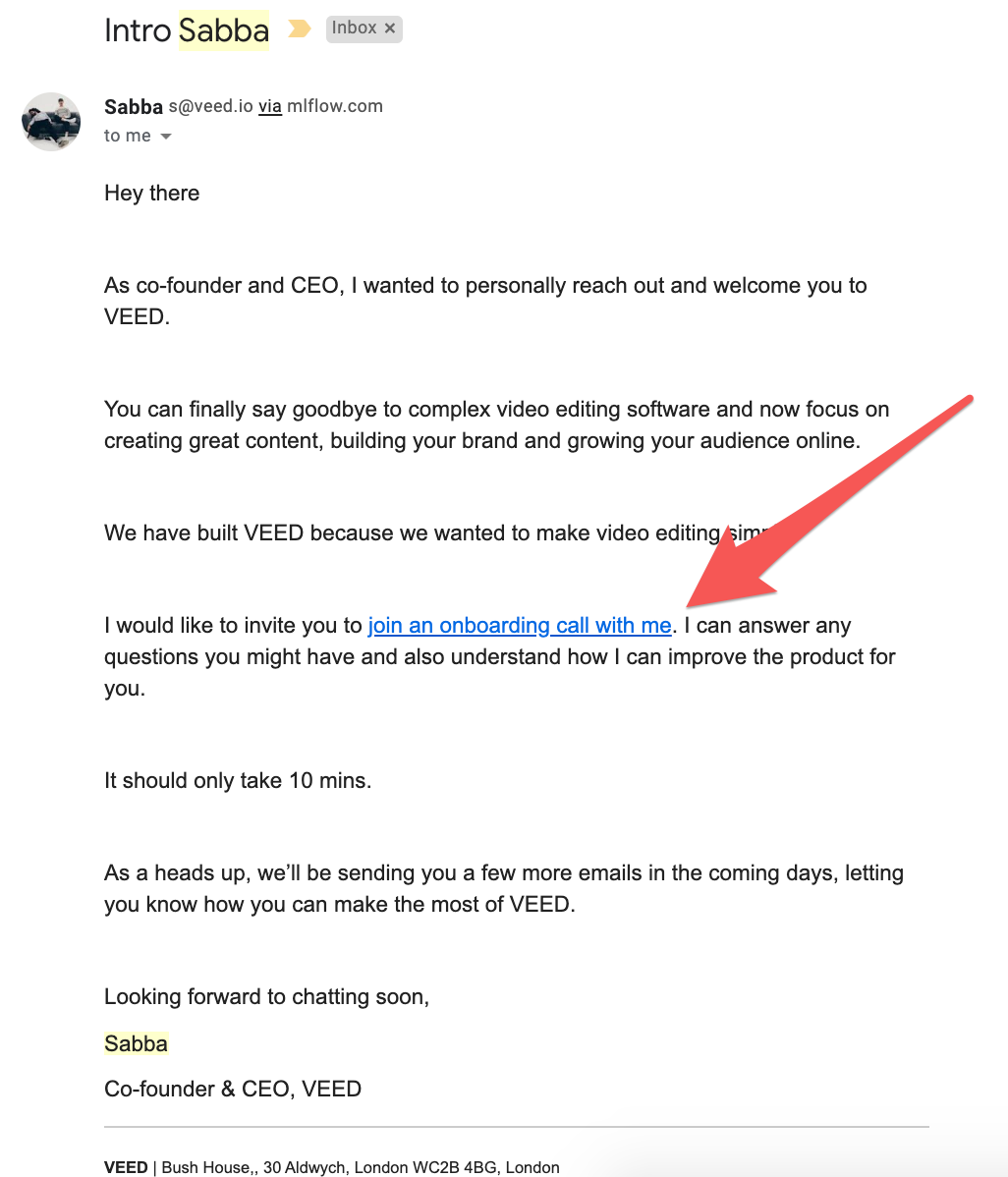 Here is the first email you receive when you sign up for a VEED trial: