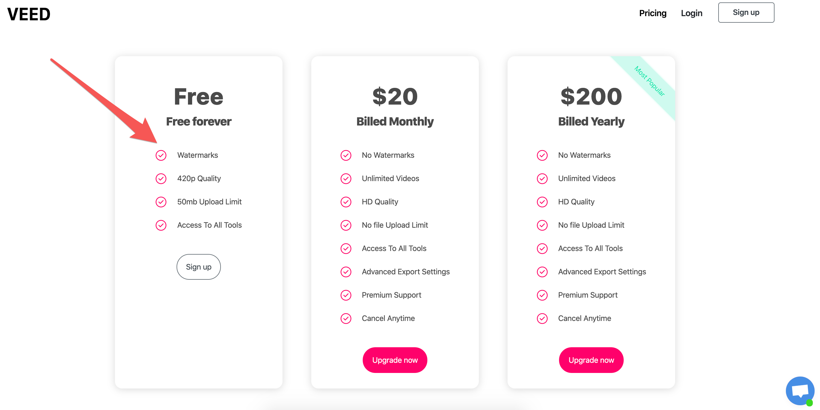 Free users cost VEED cash in the form of data storage and bandwidth costs, though they still offer a free plan. They do this as free users can only download videos with a VEED watermark, giving them brand exposure to viewers of these videos, which will inevitably lead to increased conversion to paying customers.