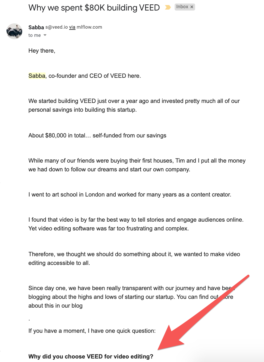 VEED are only going to be able to build an insanely good product if they know what is going right or wrong for their customers. And the most effective way for them to know this is for the founders to be the people driving customer support.