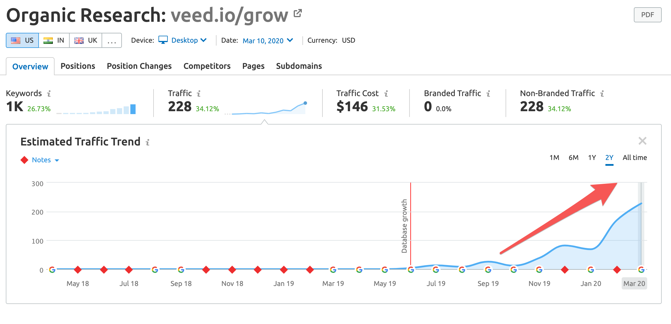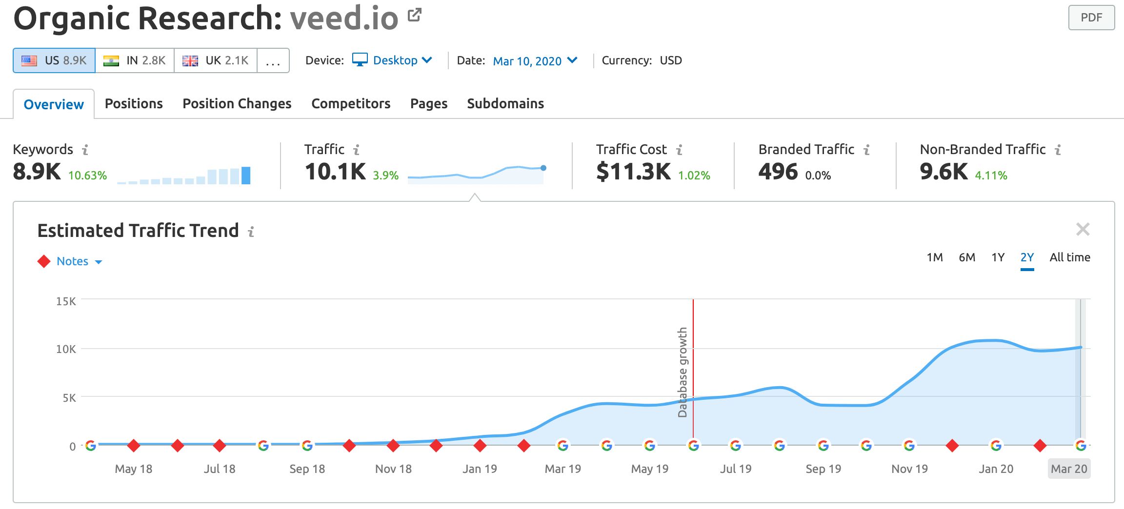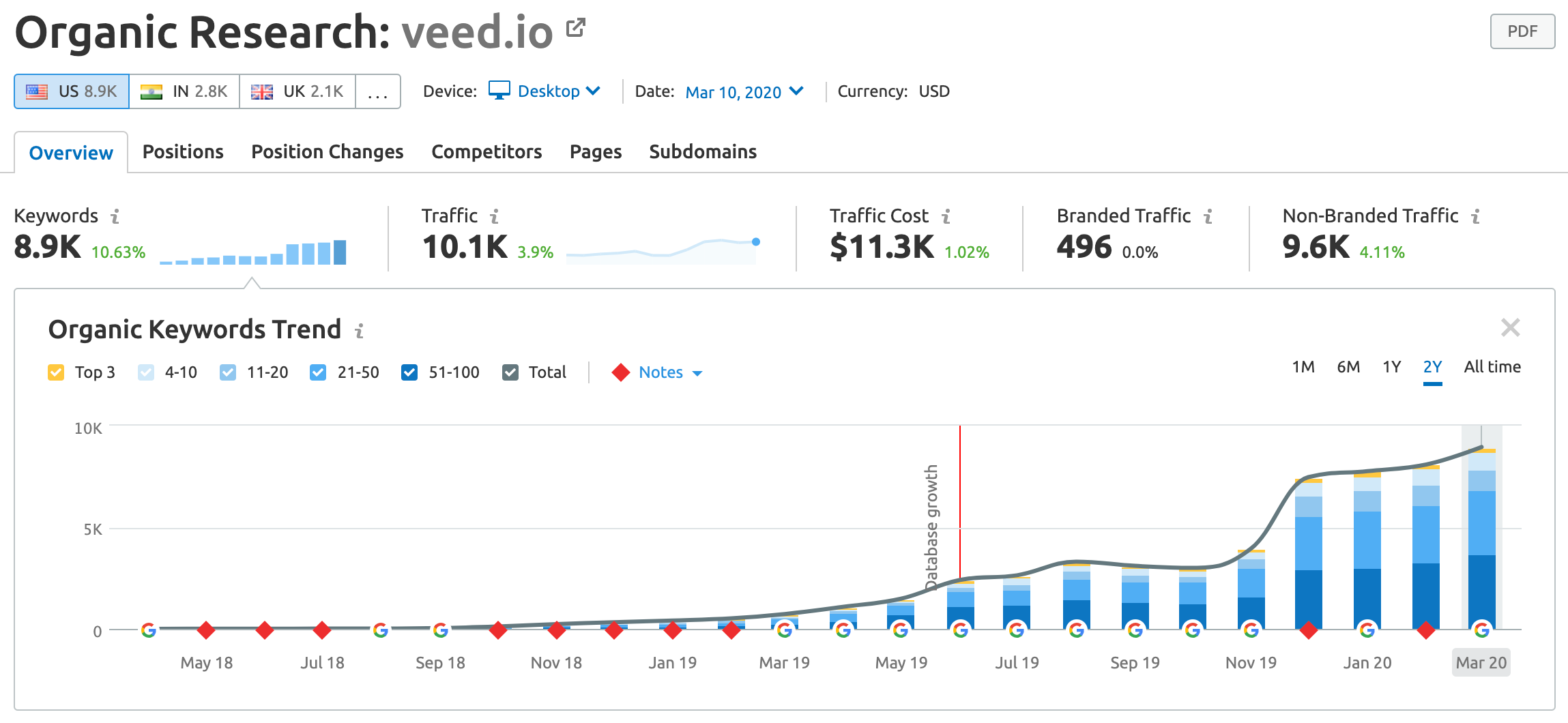 VEED’s organic traffic has scaled from zero to 9k ranking keywords: